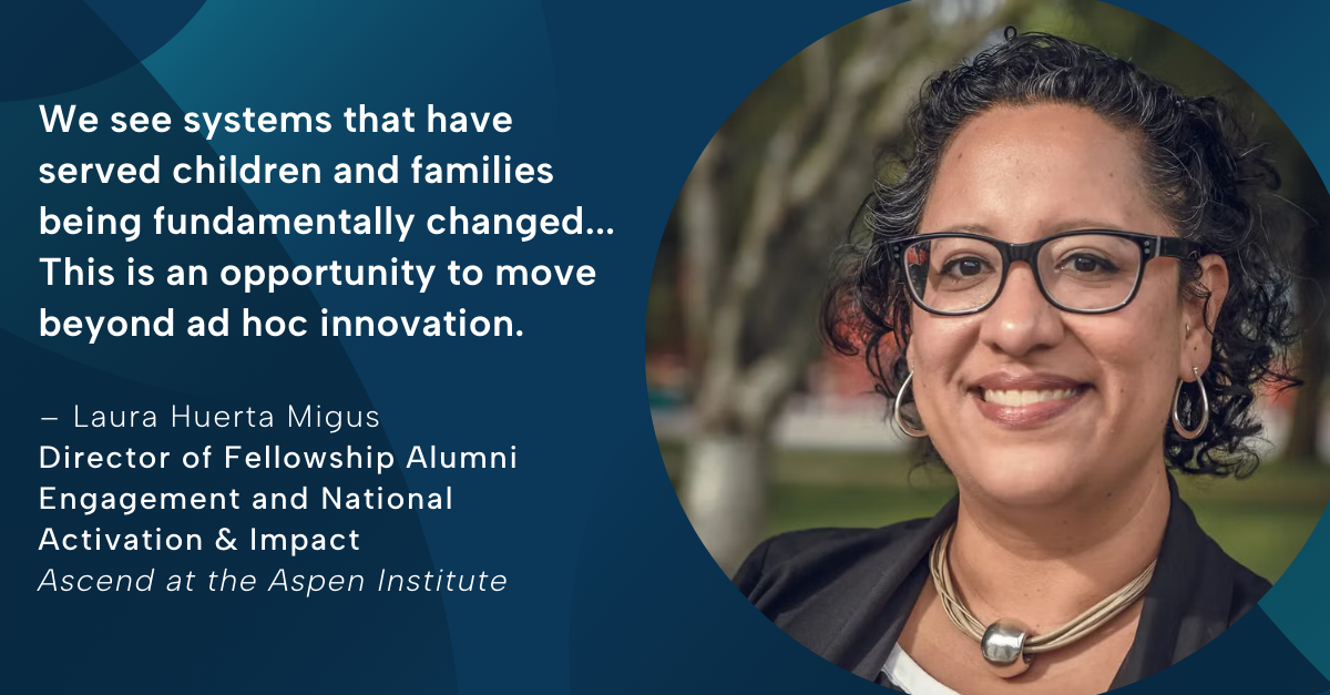 Laura Huerta Migus is Director of Fellowship Alumni Engagement and National Activation & Impact at Ascend at the Aspen Institute. An Ascend Fellow and former White House Champion of Change, she has experience in public-private partnerships, equity, and designing systems that work.